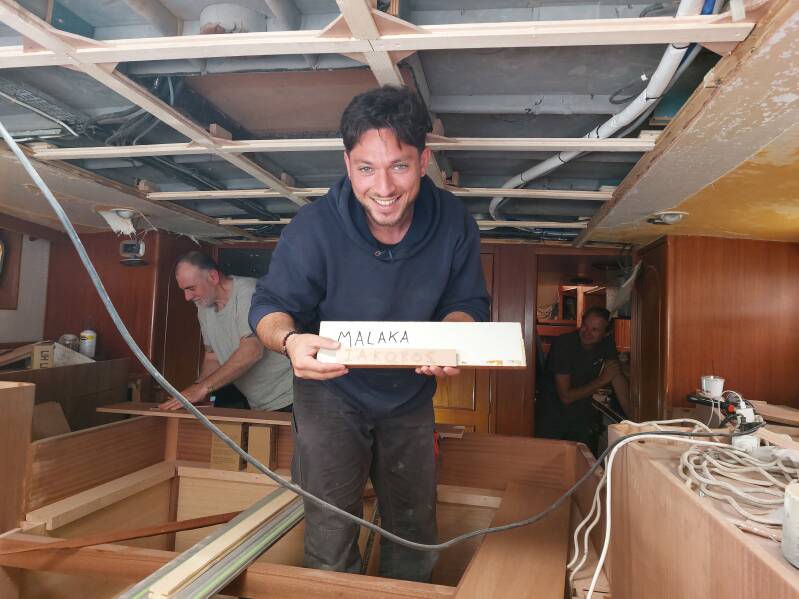 Natuurlijk kan niet alles voor de wind gaan. Pepijn en ik begonnen van de week vol goede moed met het terugplaatsen van het dekbeslag maar we kwamen erachter dat er heel veel schroefgaatjes zijn 'verdwenen' onder het nieuwe teak. Omdat we dit natuurlijk niet willen beschadigen durfden we niet lukraak in het dek te boren dus konden we niet verder. Na een telefoontje schoot onze 'Angel' ons meteen te hulp bij het zoeken en monteren en hij heeft ons woensdag zonder mopperen tot 20.00 uur s' avonds geholpen en donderdag was hij er weer. Vanaf nu noemen we hem 'Super Angel'.